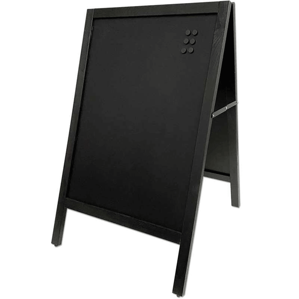 A-Skilt magnettavle i sortbejdset bøgetræ med flot lakeret finish samt magnet og kridtmarker tavle