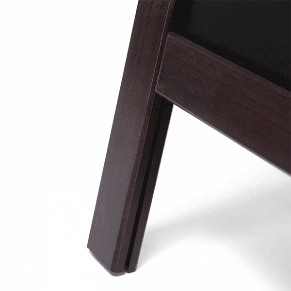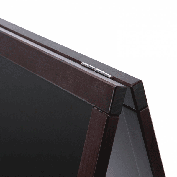 A-Træskilt brunt med kridttavle 55 x 82 cm. Det klassiske økonomi træskilt 55 x 82 cm, brunt med sort skrivetavle er et sandwichskilt der udtrykker ro og atmosfære. Du skriver og tegner selv på tavlen med vores kridtmarker penne, hvide eller farvede. Bemærk at vi har penne som viskes af med vand og “waterproof” penne som renses af med kridtmarker tavlerens.