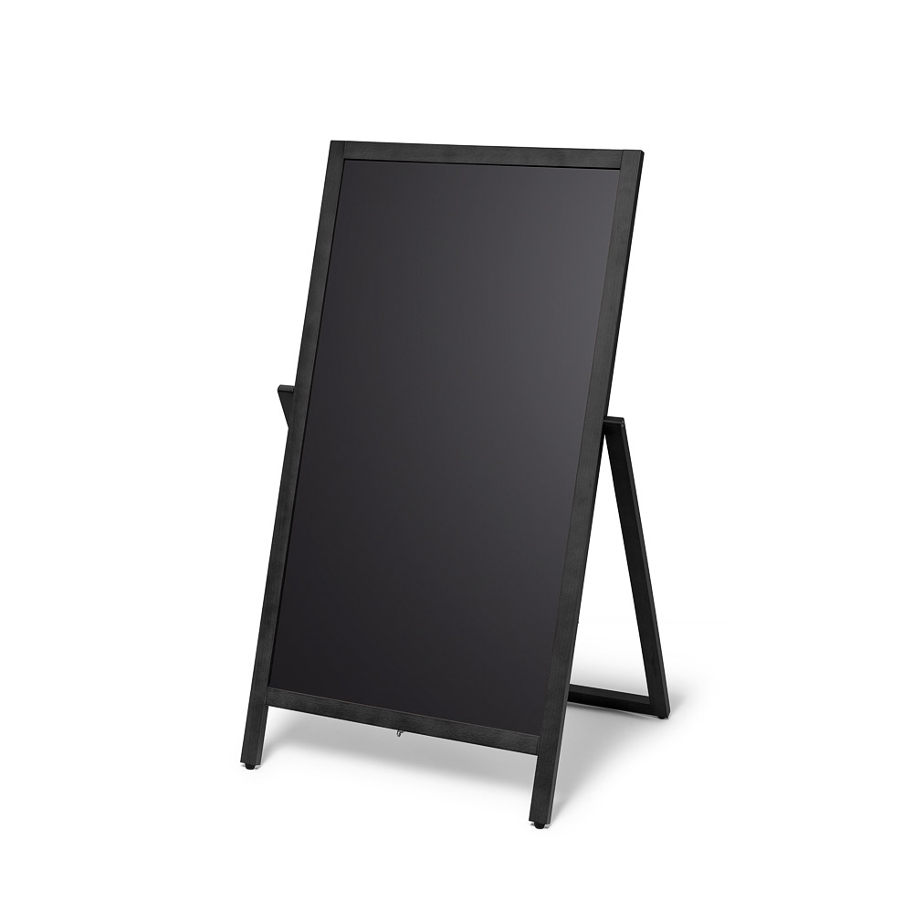 A-Træskilt Flip sort med kridttavle 49×89 cm. Du kan skrive på begge sider af flip kridttavlen eller montere papirprint på skiltet med magneter, og med et snuptag altid præsentere det optimale budskab på det helt rigtige tidspunkt. I modsætning til traditionelle tavler tilbyder Wooden A-Board Flip et unikt tavle-twist. Den dynamiske tavle sikrer, at din kommunikation altid er opdateret.