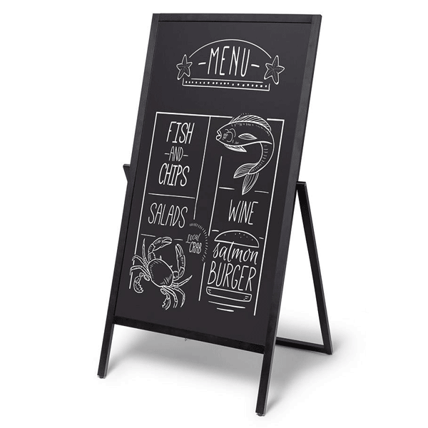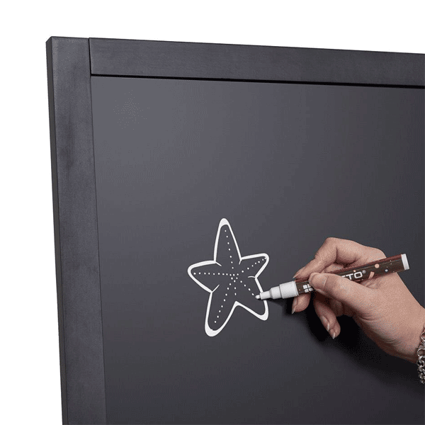 A-Træskilt Flip sort med kridttavle 62×114 cm. Du kan skrive på begge sider af flip kridttavlen eller montere papirprint på skiltet med magneter, og med et snuptag altid præsentere det optimale budskab på det helt rigtige tidspunkt. I modsætning til traditionelle tavler tilbyder Wooden A-Board Flip et unikt tavle-twist. Den dynamiske tavle sikrer, at din kommunikation altid er opdateret.