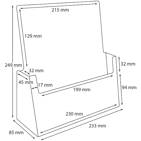 TAYMAR brochureholder bordmodel C230 med ét rum til A4 stående format.
