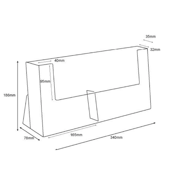 Brochureholder bord 1 rum A5 liggende CLA5. TAYMAR brochureholder bordmodel med ét rum til A5 liggende format.