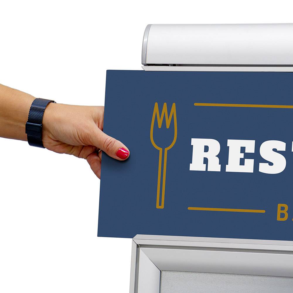 Compasso Gadeskilt A1 er incl. integreret logoplade. Eksklusiv og formfuldendt udførelse gadeskilt med flot finish og helt uden skarpe kanter. Brugervenligt med Compasso Snaprammer, hvor plakaten placeres i en PET lomme som har genanvendelig selvklæb i toppen så dine plakater holdes fri for regn endnu længere ekstra godt beskyttet imod fugt.