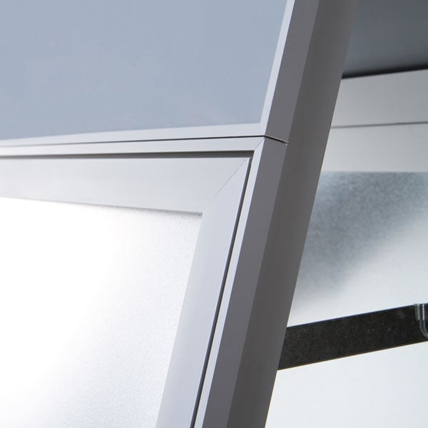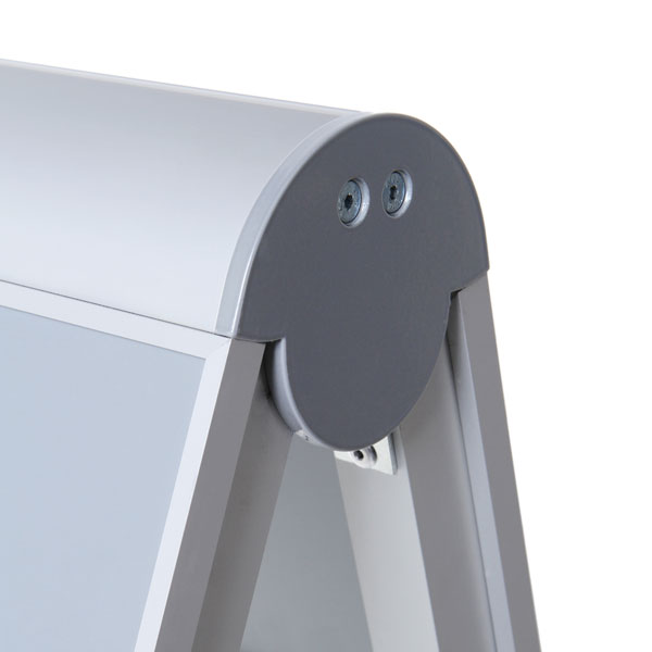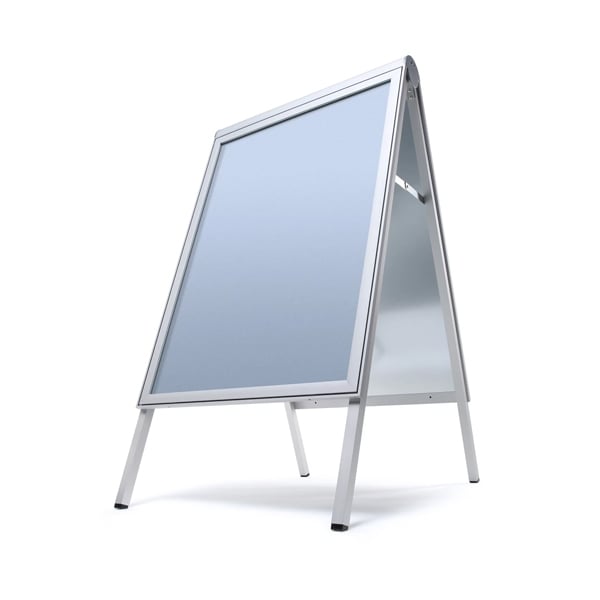 Få øjeblikkelig opmærksomhed med Design Compasso® A-Board! Dets eksklusive rammedesign og afrundede top giver dine budskaber et elegant og eksklusivt præg. Den er lavet af aluminium med metalbagpaneler og stænktætte plakatlommer og er klar til daglig udendørs brug. Den er iøjnefaldende fra alle vinkler og sikrer, at dine reklamer altid bliver bemærket!