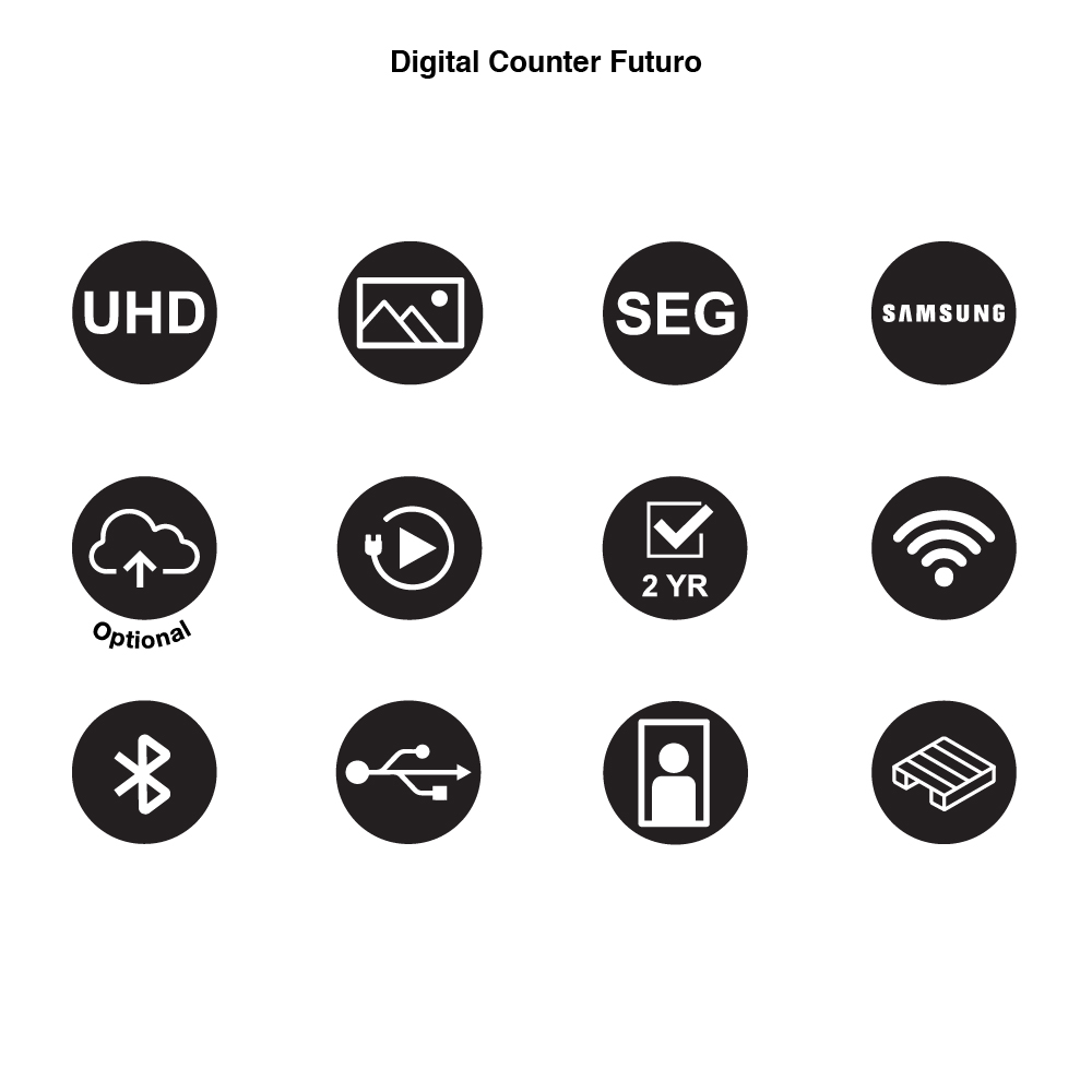 Mød den nye generation af diske, – den digitale disk! Du sætter disken op på få minutter helt uden værktøj. Disken er udstyret med en hylde som du kan betjene fra dens bagside og her kan du opbevarer alt det som kunden ikke skal se eller skal have udleveret af dig. Alle øjne er rettet mod din markedsføring på den digitale disk. Løft din præsentation til nye højder, og vis dit brand, din kampagne, din virksomhed eller dit produkt, lige der hvor kundestrømmen kommer forbi. Perfekt til brug på messer, events, indkøbscentre, pop-up-butikker, hotel- og restaurationsbranchen, entréhaller, showrooms og meget mere!