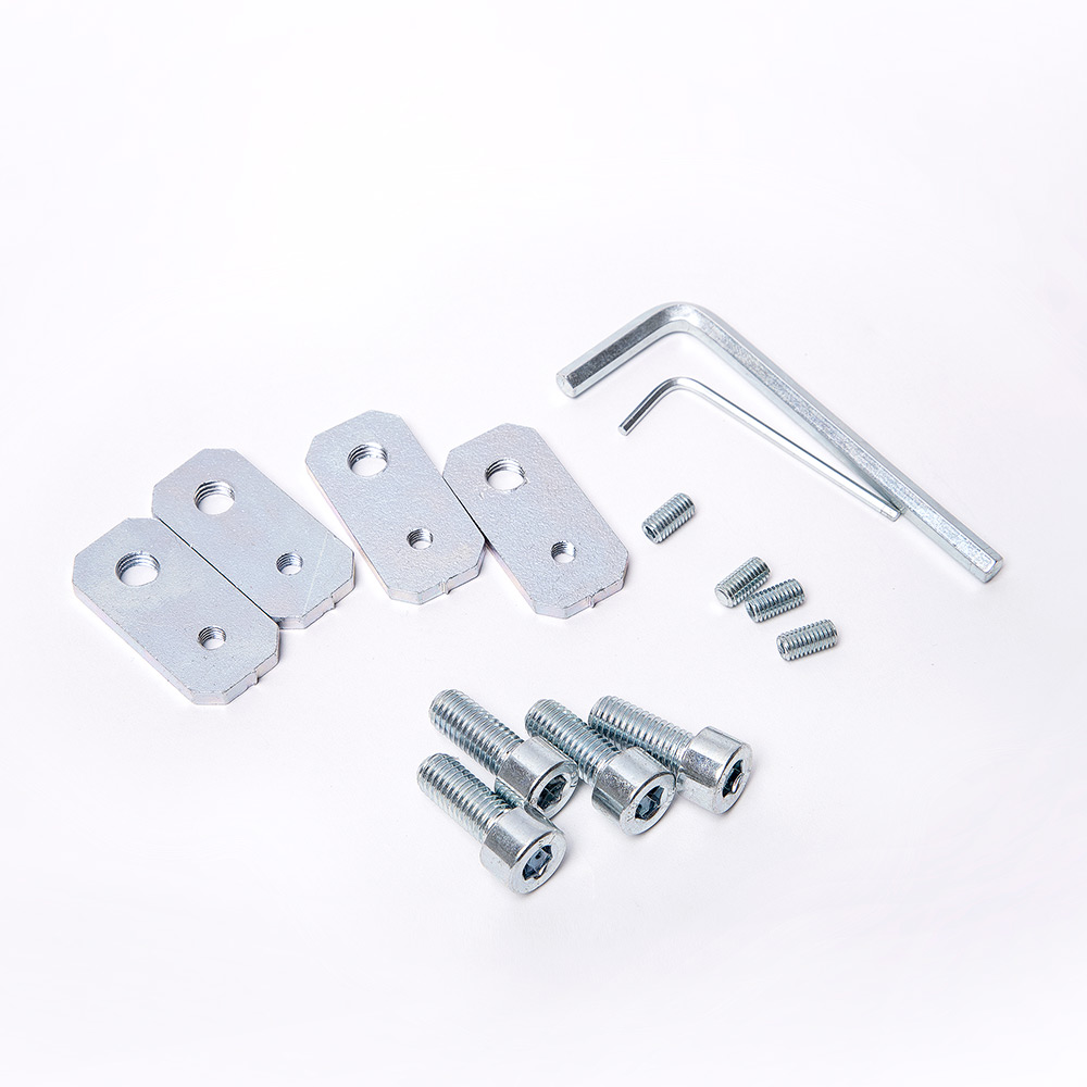 Fittings til montering af opslagsskabe på stolper. Udvid din eksponering med et ekstra med et eller to opslagsskabe fritstående på 2 alu-stolper. Komplet sæt med fittings til montering af et opslagsskab i hvilken som helst størrelse. Du monterer sættet i stolpens lodrette spor, finder den højde du ønsker skabet skal hænge i for at eksponerer dine print bedst muligt og strammer de 4 skruer fast. Hvis du vil have et skab på de 2 alu-stolper anbefaler vi skabsmontering imellem stolperne. Ønsker du et skab på begge sider af stolperne skal du bruge 2 sæt monterings fittings og nedstøbe stolperne så skabene kommer til at hænge på for- og bagside af de to alu-stolper.