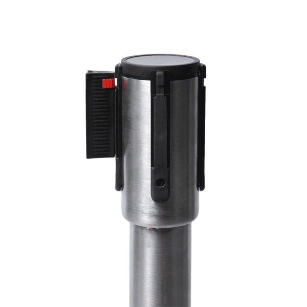 Køleder Economy stolpe sølv med sort sele 250 cm. Kø-Ledere med sort sele 250 cm og modtagerbeslag til 3 sider. Leveres med stolpe i sølv og bånd i sort.