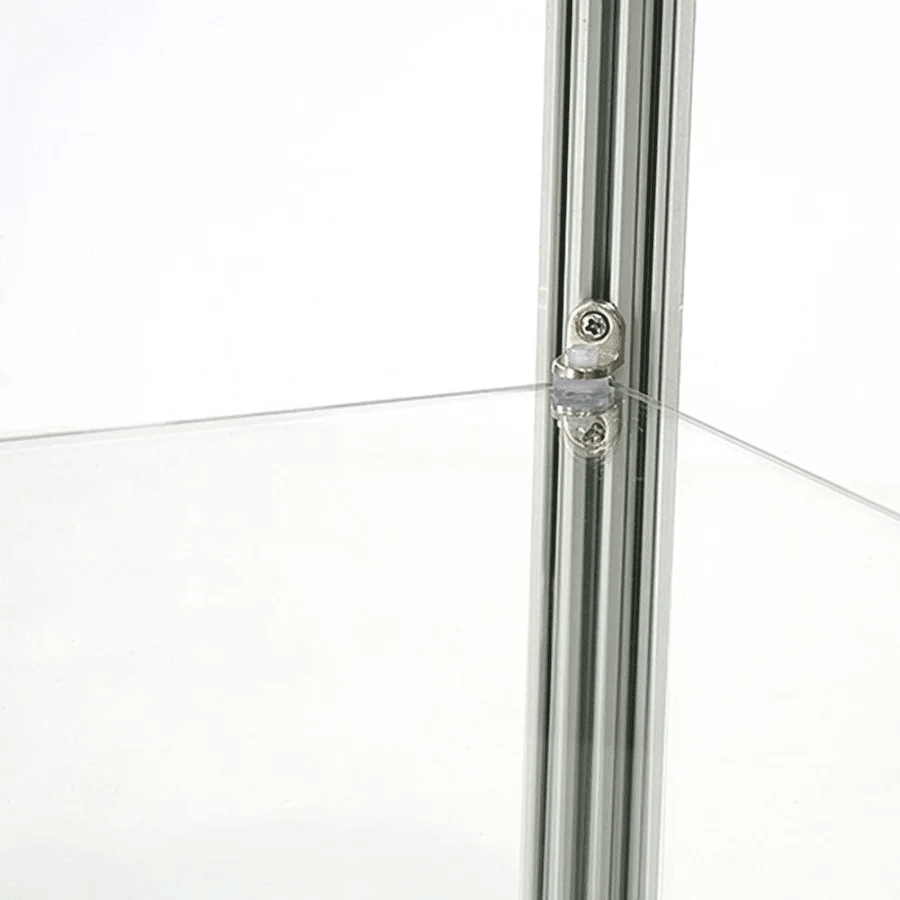 De medfølgende 3 glashylder med en godstykkelse på 7 mm er i hærdet glas og giver god plads til opbevaring og eksponering. Skabet har i alt 5 LED spotlys, der giver fremragende belysning til udstillingen igennem hele glasskabet. LED udstillingsmontren er desuden udstyret med fire “skjulte” hjul, så du kan flytte det og indstille skabets stilleskruer, så skabet står godt, lige og sikkert på gulvet. Bemærk at når du placerer montren på en permanent plads, skal du sørge for at den hviler på stilfødderne så den står godt fast.