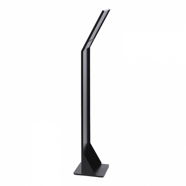 Menu stand slim gulvmodel A4. Menu stand slim er en elegant udført stålkonstruktion, smart og enkelt designet med overfladebehandling i sort epoxylak.