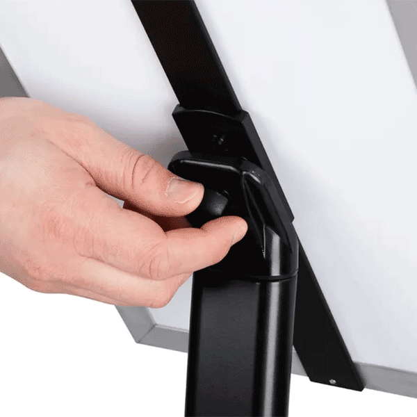 Dit Elegant Menuboard Design Outdoor er klar til brug på få sekunder og kan naturligvis også anvendes indendørs. En let konstruktion som er samlet på et øjeblik. Standeren leveres i 3 stykker, så den tager et minimim af plads under transport. Når du bruger standeren udendørs kan du med fordel anvende de 2 huller i den runde fod til at fastgøre Menuboardet til underlaget.