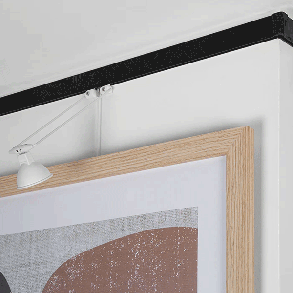 Når først galleriskinnerne er monteret, har du ubegrænset frihed til at placere dine billeder på væggen i alverdens størrelser, præcis der hvor de tager sig allerbedst ud, uden at skulle bore et eneste hul mere i væggen.