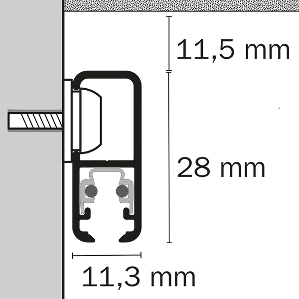 Multirail Galleriskinne 12V SORT 150 cm. Multirail Galleriskinne i sort lakeret aluminium med integreret koberkerne til 12V. Den monteres på væggen i passende højde, og om ønsket helt op imod loftet. Monteringen er enkel, idet du blot skal have en skrue samt monteringsskive på væggen, og derefter klikker skinnen på skiven. BEMÆRK at alle fittings skal bestilles separat nedenstående under relaterede varer.