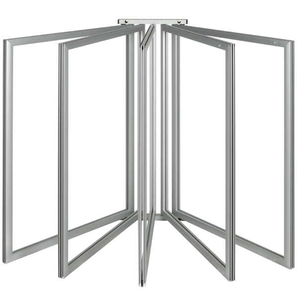 Plakat bladrer system vægmonteret med Snaprammer leveres i sæt med 5 Snaprammer, der monteres på det medfølgende beslag. Rammerne er af slide-in-typen, hvor du let kan skifte dine plakater fra rammens side, og du kan eksponere i alt 10 plakater ad gangen. For at undgå unødig støj når der bladres i plakatrammerne, er de monteret med gummi dupper som du kender det fra f.eks. en skabslåge i et køkken.