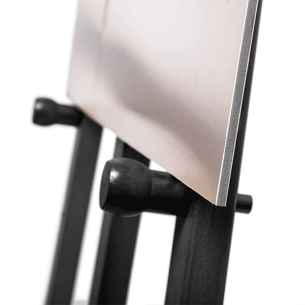 Staffeli i sort 70 x 166 x 80 cm. Det klassiske staffeli har flere justeringsmuligheder og er perfekt tilbehør, hvis du vil anvende vore menutavler fritstående. Staffelierne leveres også i bøgetræ og i mørkbrun bejdset træ.