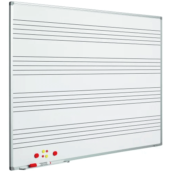 Whiteboard 150×120 cm med nodelinjer og diskret alu-kant. Robust og formfast kvalitet med slid- og ridsefast skrive og magnet overflade.
