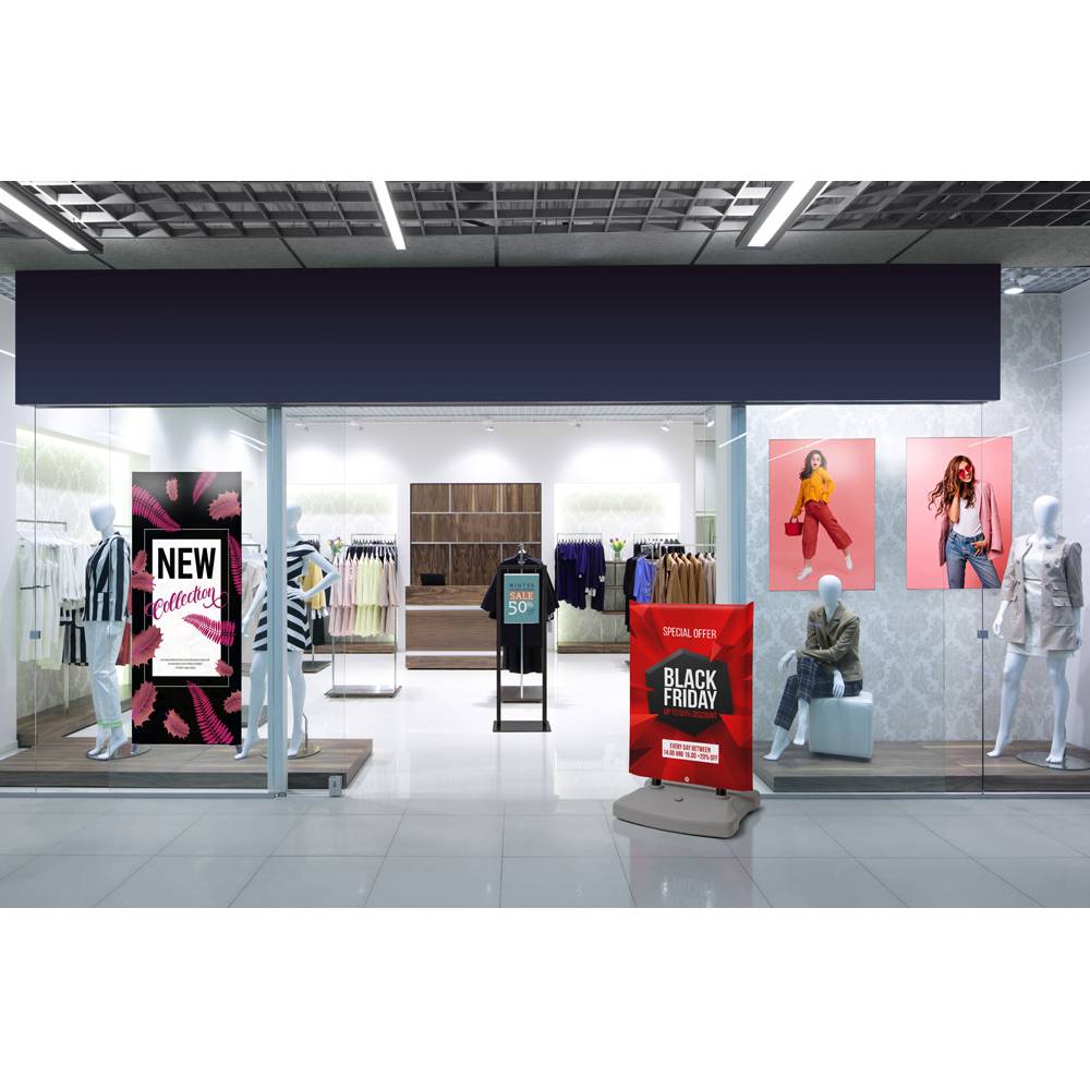 Vis dit budskab, kampagner eller logo på din Windtalker® med den nye Windtalker® reklame cover A1 PVC overtrækshætte. Windtalker® PCV Cover er en fantastisk løsning til hurtig ændring af kommunikation eller reklame og til gentagen brug. Takket være PVC materialet er din personlige reklame eller budskab klar til at skille sig ud i mængden, samtidig med at den beskytter skiltets vitale dele imod voldsomt vejr. Du skal blot trække den over din Windtalker® som en pose. Fremhæv din promovering, branding eller budskab nemt og hurtigt på sekunder. En dobbeltsidet grafik i A1 og 70 x 100 cm, der passer til de fleste Windtalker® gadeskilte.