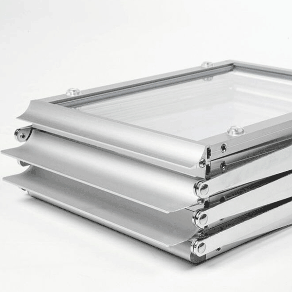 Zig-Zag Brochurestander transparent og foldbar 6xA4. Væk opmærksomheden med brochureholderen ZigZag. Den fanger øjeblikkeligt opmærksomheden med seks akryllag, der viser dine materialer tydeligt på begge sider. Dens foldbare aluminiumsramme sikrer et moderne look og hurtig opsætning. Den leveres med den luksuriøse solide transportkasse for ultimativ beskyttelse, og er klar til at blive flyttet, hvorhen du har brug for den!